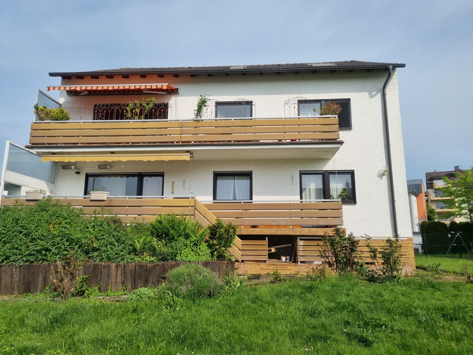 Ausstattung - Wohnhaus mit 3 Einheiten - BJ 1974 - Grundstück 777 m² - EG: 3,5 ZKBB und Gäste WC - ca. 112,50 m² Wohnfläche - OG: 3,5 ZKBB und Gäste WC - ca. 112,50 m² Wohnfläche Leerstand - renovierungsbedürftig - DG: 3 ZKB - ca. 75m² - Nachgenehmigung erforderlich - Nutzfläche ca. 108 m² im KG - 2021 neue Heizung - 2022 EG neue Fenster - Garten und Balkone nach SO |